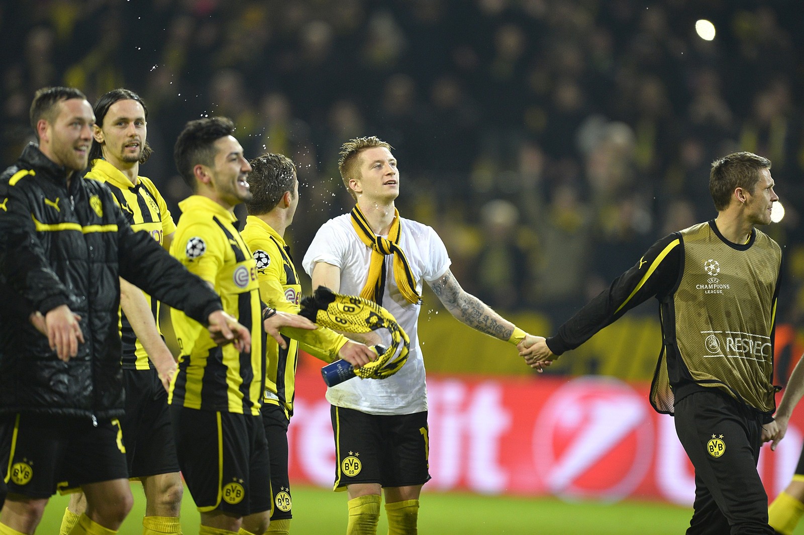 看着他围着球迷给的围巾 看着他和大家一起兴奋的爬上南看台的铁丝网和球迷拥抱吼叫 我突然觉得这是我一直想看到的 追求他踢出更好的足球是一方面 另一方面,是看到他展现对多特蒙德的爱