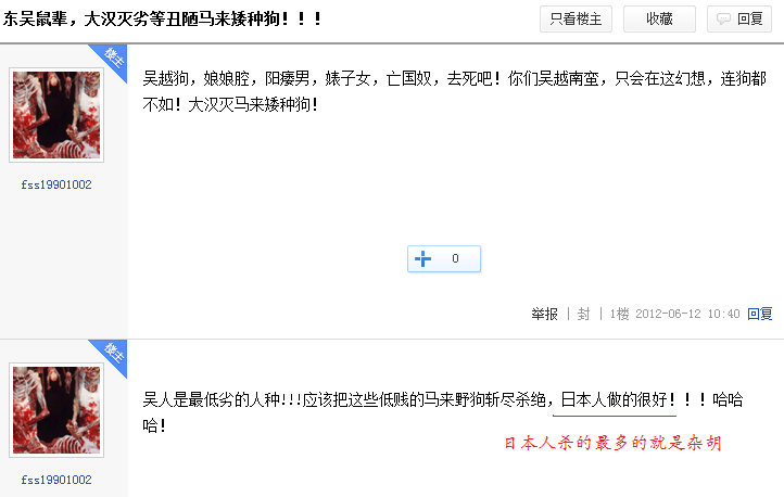 回复 味素咯 :汉服吧的皇纳可不少 对他们来说 方言是必须被消灭的 典型被游牧民族洗脑出来的杂胡品种 还自称“衣冠” 可笑之极