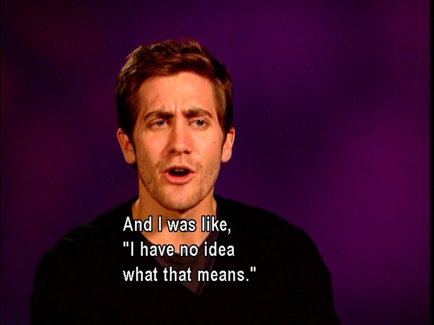 今天才看到的幕后花絮。Jake说起拍BBM李安指导他和安妮的时候,Ang goes, "You go together like milk and water." And I was like, "I have no idea what that means."笑死我了!李安想说的是“水**融”吧。Jake不懂,因为美国人喝奶从来不加水