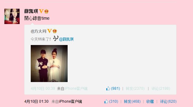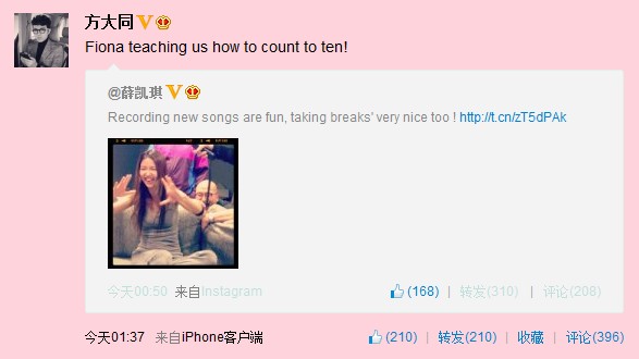 8号的时候我看到这个,就想fifi那天是不是要去亮房录音哦,可是又不敢肯定。。。因为她这个是过了0点发的所以显示的是8号,其实她是算7号的吧,所以后天就是9号啦~