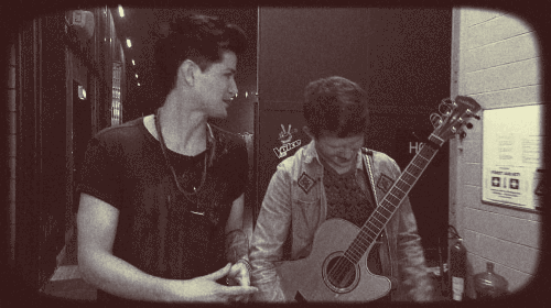 应该是在拍the voice的宣传