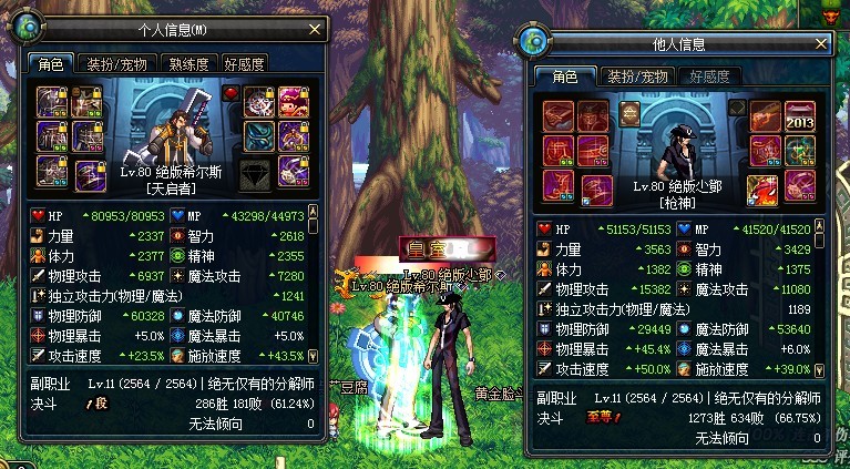 ,但是这就出现一个问题,因为曾经我做测试的时候,这个结论是相反的,但如今却得到新的结论,这段时间发生了什么呢?体精的变化,基础的站街体精变化了~于是我们继续将测试人员固定,现在我把我的时装,和左槽脱掉,使我的基础体精降低到站街双1800,我们在来对比一下:,在来做个测试