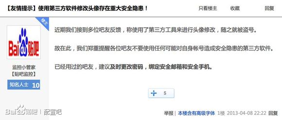 而且跟那个软件挂钩的血〇是什么论坛,稍微玩过两年贴吧的人就不可能不知道。到时候你们发现自己的账号稀里糊涂地参与了爆吧,稀里糊涂地被度娘永封,233。