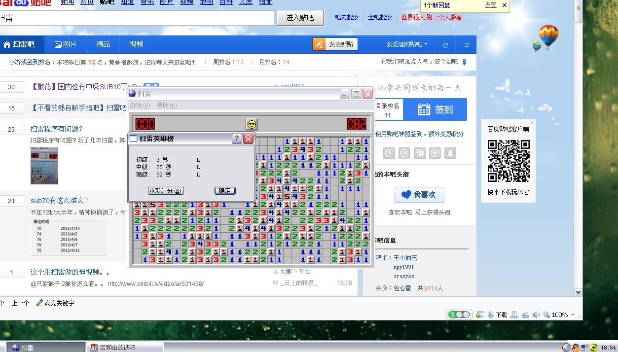 求爆的话,你可以点本吧右侧链接,到国内排名网站(扫雷网)看看。。