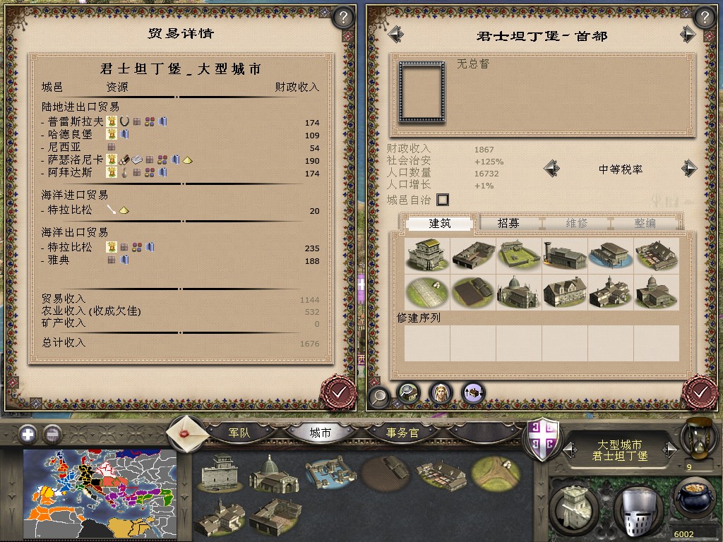 拜拜一些主要城市的经济状况。。有港口的拜拜一般都是2000+的收入的,这里略微减少了