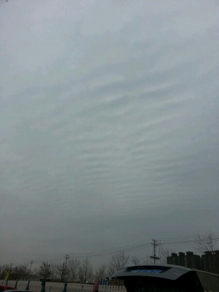 2、边界清晰,此点有别于傍晚出现的辐射状高积云,也是几条长条形云延长交于一点。
