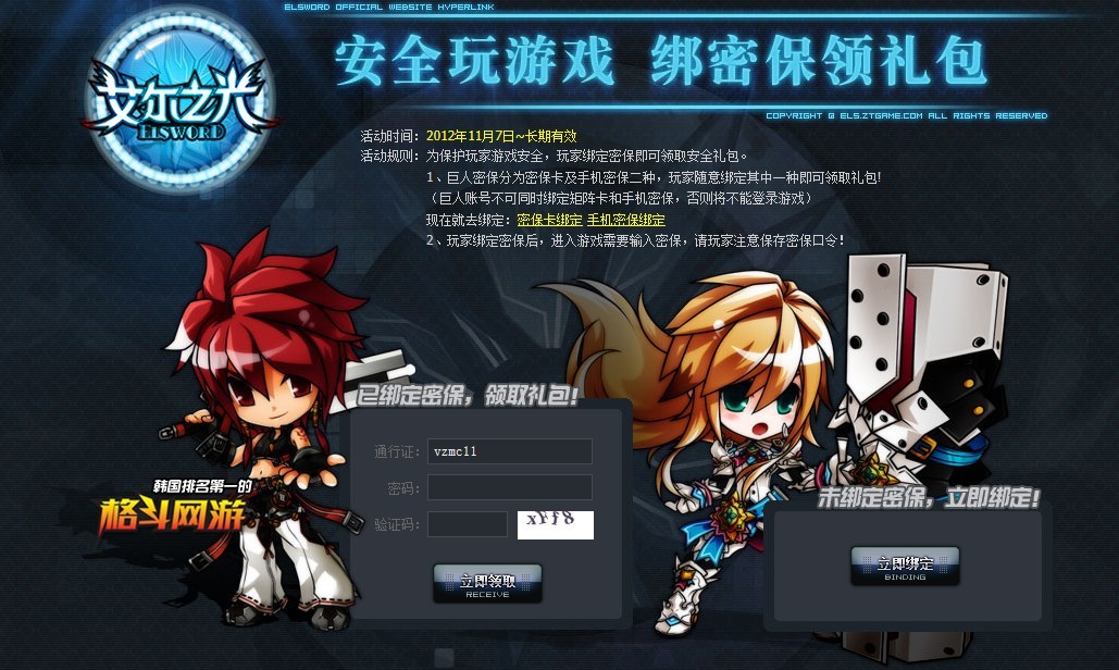 然后我就去绑定了,然后每次登陆官网或者游戏都需要输入手机密保动态密码,