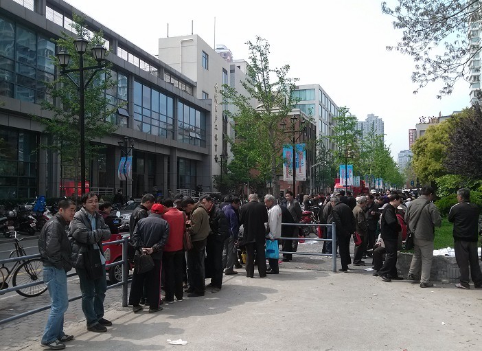 天气是晴朗的,邮市的人群是这个年龄段的。。
