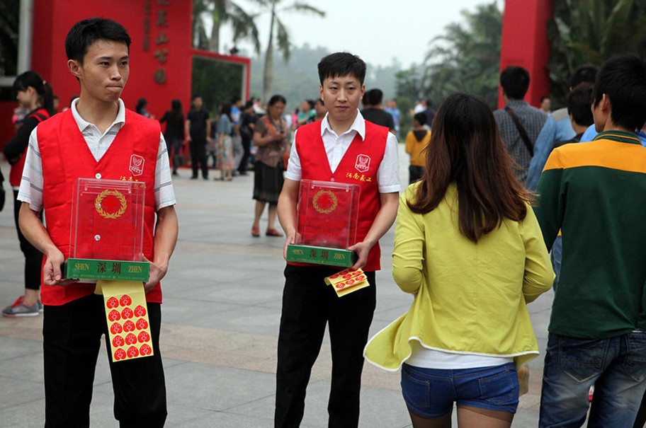 红十字会为赈灾上街募捐,行人避开。