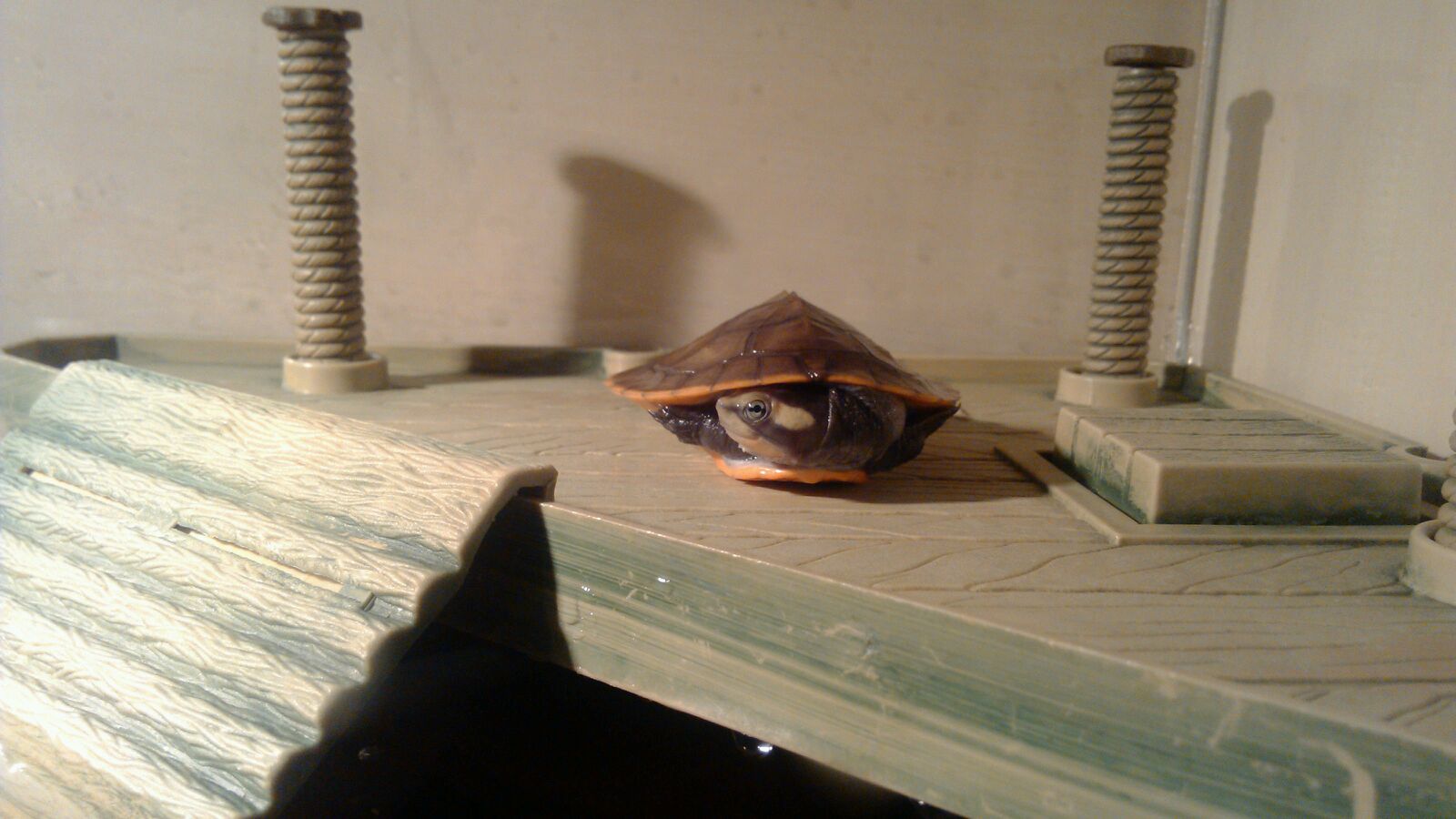 最后来一张全景。晒台还是没有见过小家伙爬上去。灯是uvb3.0+uva以前养水龟一直用这个灯。
