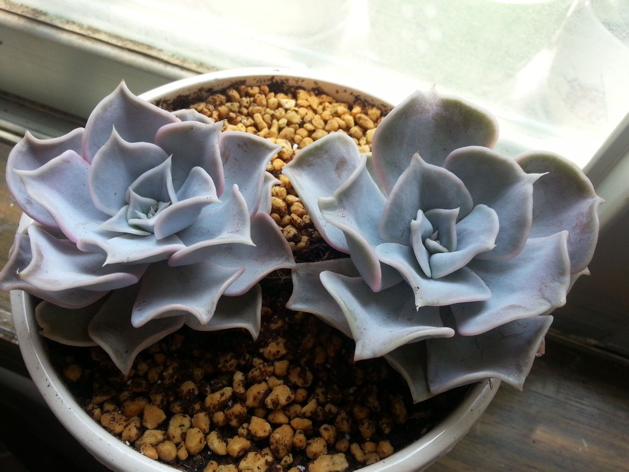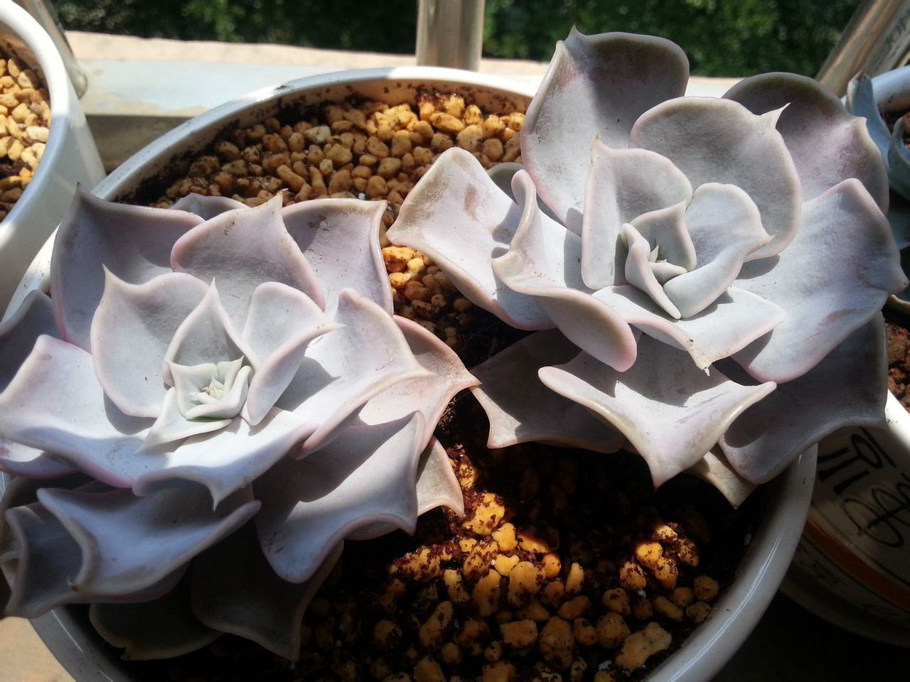 :摄影水平很烂,看到夕阳下的肉肉们很美就拍了些,稍微曝光过头了些,没调色哦!我家丽娜就是外层发青,中间粉蓝带点粉红的颜色,很漂亮的。