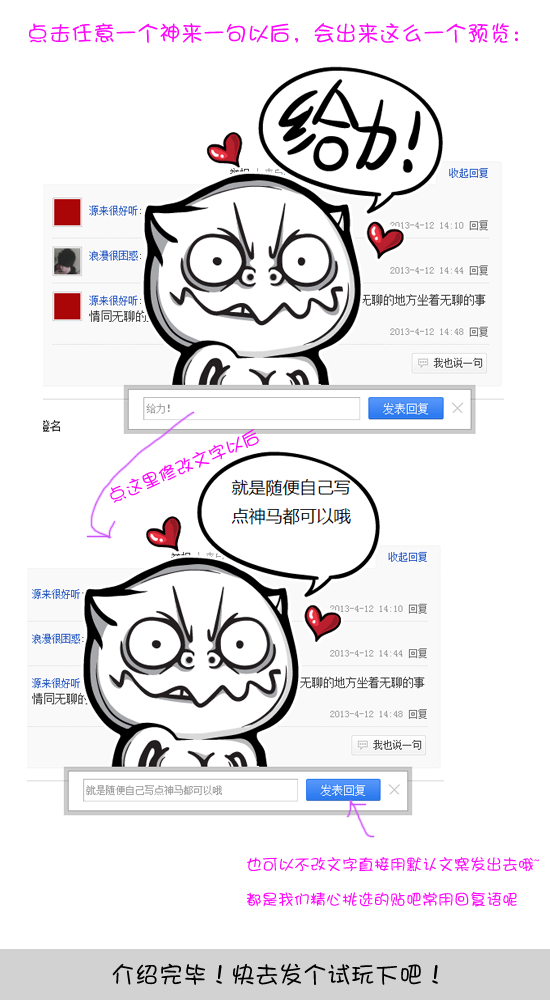 “神来一句”趣味回复功能已在全贴吧范围上线!