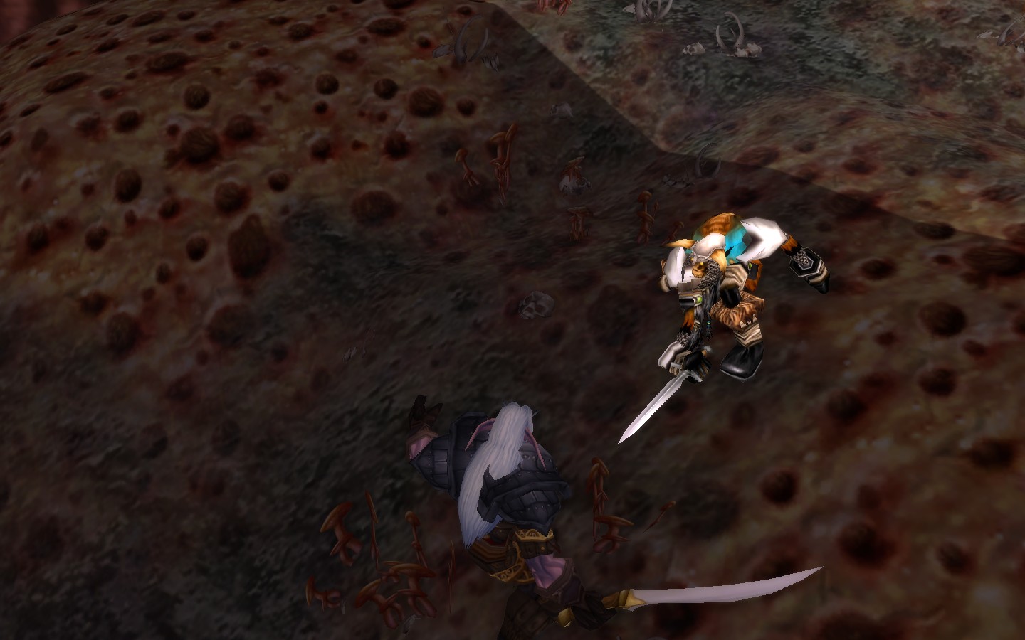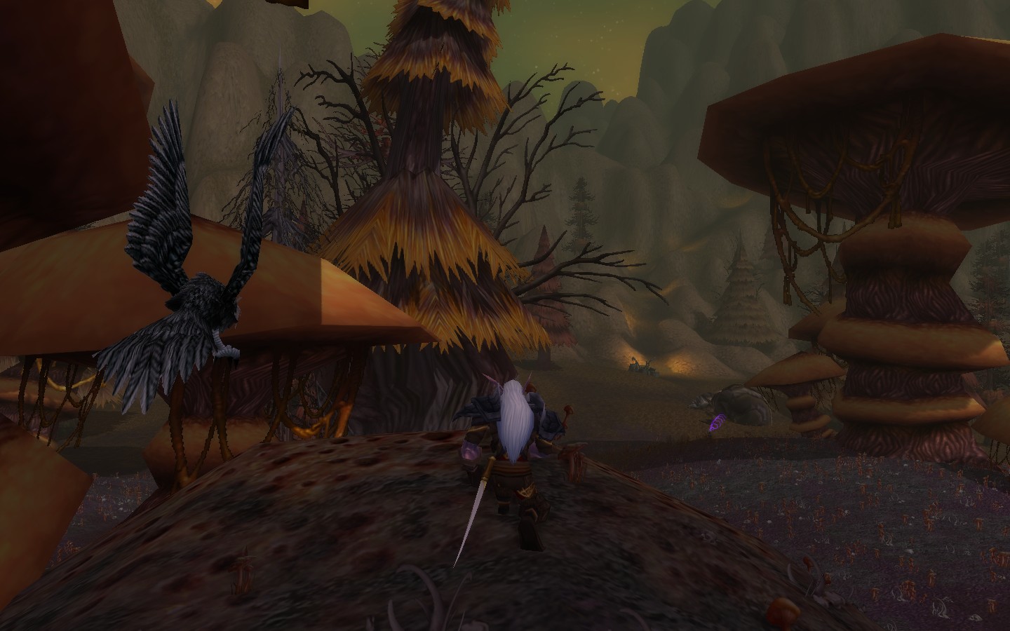 当我正趴在地上思考如何安全通过时瑟兰迪尔竟然直冲冲的飞向憎恶,利爪在憎恶身上划过,憎恶一声吼声,挥舞着铁链甩向瑟兰迪尔,瑟兰迪尔灵敏的闪开,然后飞向右边的林地中。我被眼前的状况惊呆了,瑟兰迪尔吸引了憎恶的注意力好让我快速通过,我赶紧起身向前跑去,希望瑟兰迪尔赶紧回来我这!
