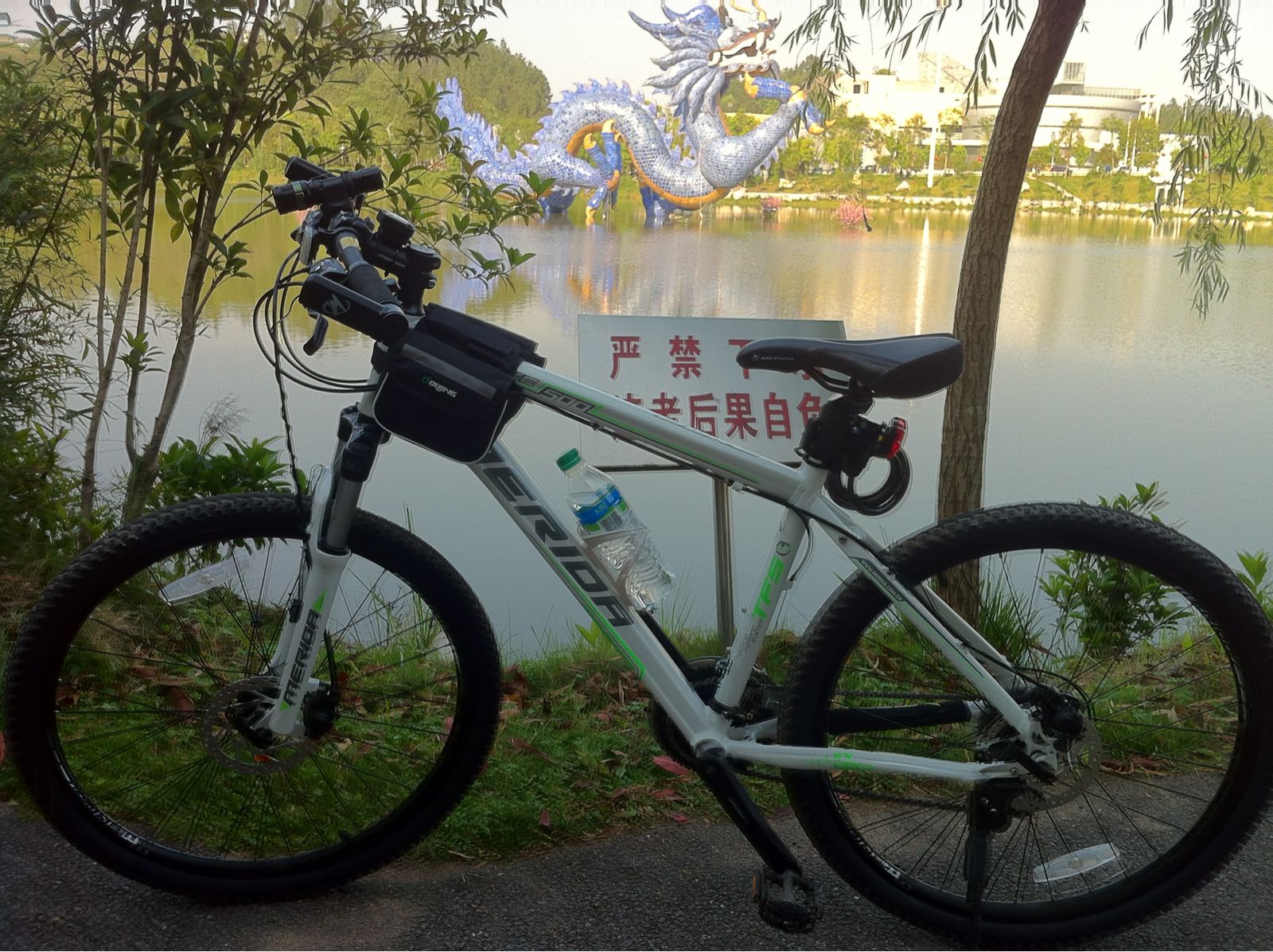 2天前走在街上,一个50多岁大爷骑着一辆很拉风的山地车从我面前一闪而过,顿时觉得吵NB的说。回到家就上淘宝、贴吧、论坛关注山地车(之前对山地车没有任何了解,记忆还定格在10年前读初中时的凤凰脚踏车)。我属于那种易头脑发热的类型。想好了就要立马行动开干。今天一下班带上大米直奔专卖店去鸟,公爵500 2098大米收下的~~送了码表、束脚带2个、保护贴、水壶架、尾灯