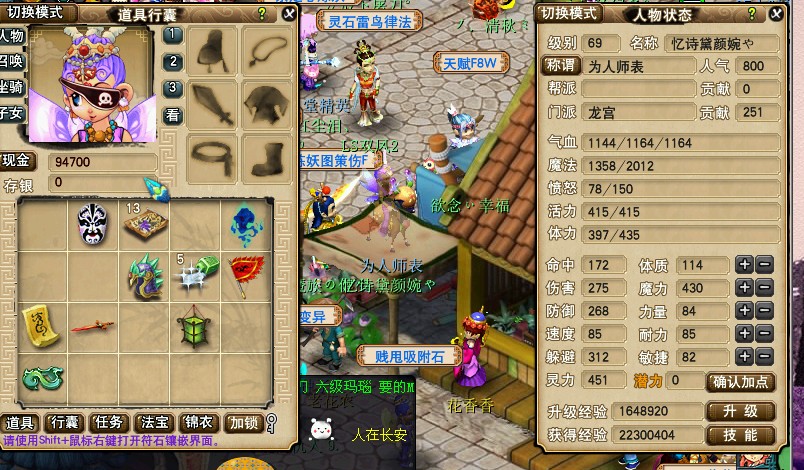 啦啦啦~~ 是一个账号,不过在不同的区,2个ID 69女龙宫和69男大唐。分别是九仙山和茶山