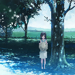 树下啃梨的女孩
