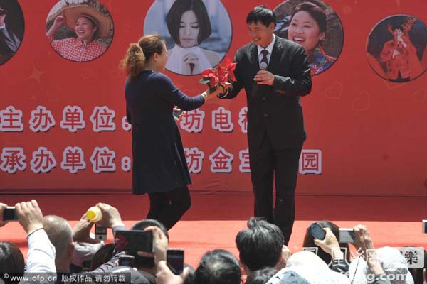 2013年04月29日,山东省潍坊市,“大衣哥”朱之文等山东籍草根明星来到潍坊市金宝乐园演出,受到粉丝的追捧。当天,朱之文穿一身黑色西装亮相,引来大批民众围观。落座后,身后更有三名戴着墨镜的工作人员护驾,排场十分浩大。