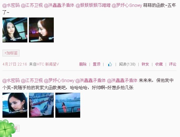其实我完全是因为看电视看的太兴奋了 就想去发一发 所以我连关注都没有关注水密码和江苏卫视 并且我还不知道@ 对没有 结果中了。。。。