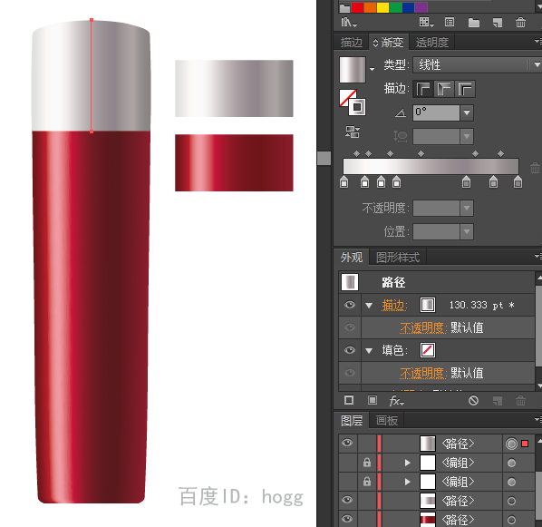 用宽度工具可以很方便的调成瓶身的形状。渐变在瓶身转折的地方也很完美(旧版本AI的可以用+封套扭曲同样实现)