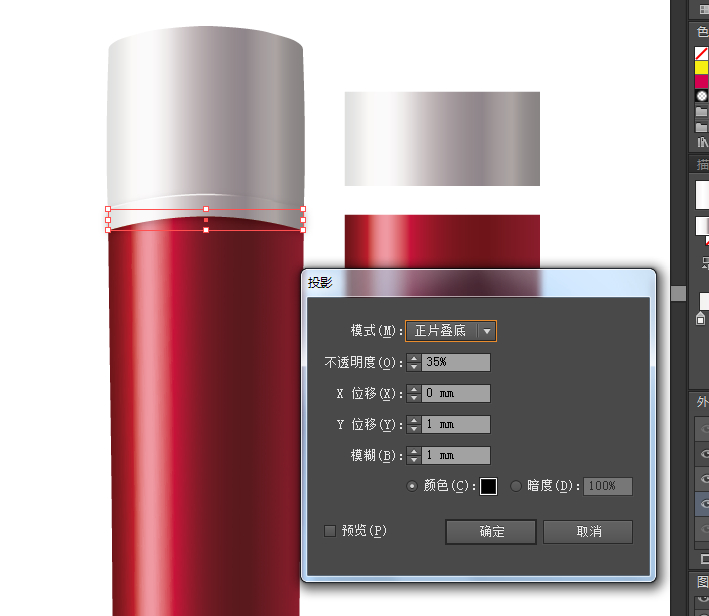 为了修正这个问题,可以给瓶子加上一个剪切蒙版,上面那个瓶盖突起的部分阴影,可以用同样的方法处理;