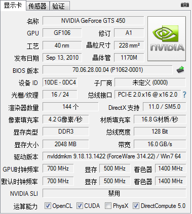 D3版的450SE,OEM叫GT440,但不是GF108核心的零售440。 就当给你们补补课。