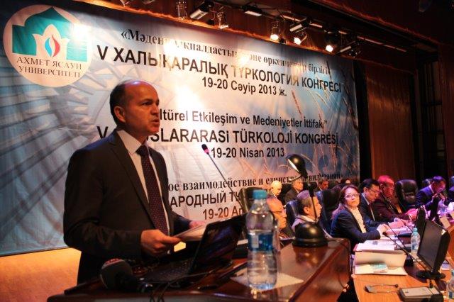 Birincisi 9-12 Ekim 2002 tarihleri arasında düzenlenen Uluslararası Türkoloji Kongresi’nin beşincisi, 19-20 Nisan 2013 tarihleri arasında Türk Dünyasının ruhani başkenti olarak kabul edilen Türkistan şehrinde, Orta Asya’nın sayılı bilim merkezlerinden biri olma yolunda emin adımlarla ilerleyen Ahmet Yesevi Üniversitesi çatısı altında “Kültürel Etkileşim ve Medeniyetler İttifakı” ana temasıyla gerçekleştirildi.