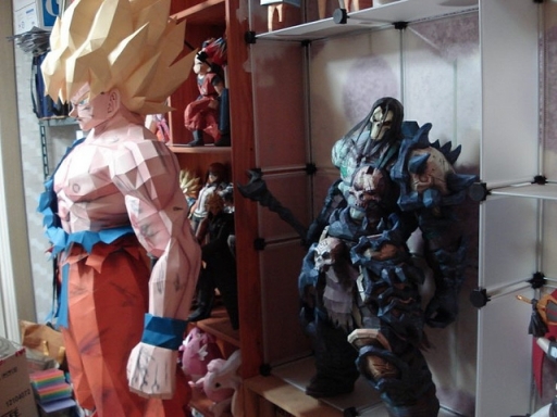韩国一位3D纸模型高手sinsi,就用了接近一个月时间,先在电脑软件搭建模型,然后打印出来,逐块逐块砌成悟空。而且还是一比一原大!放在书房里何其霸气!