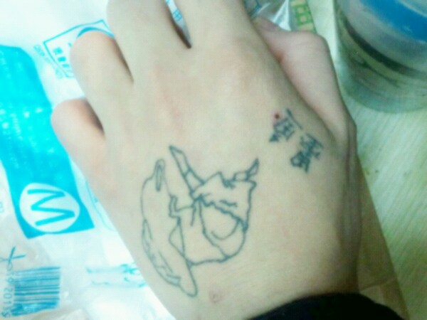 是蜡笔小新。连墨鱼一起盖,图案得很大。要命的是墨鱼的墨汁颜色太深,质量太好了。
