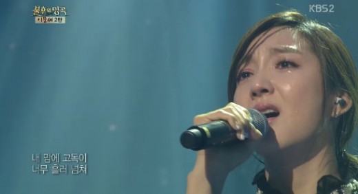 姐姐前面说每个人对同一首歌都有不同的理解,而她练习这首歌的时候是想着故去的妈妈练习的,舞台上唱着唱着就流泪了,估计是想起了妈妈了吧~~~