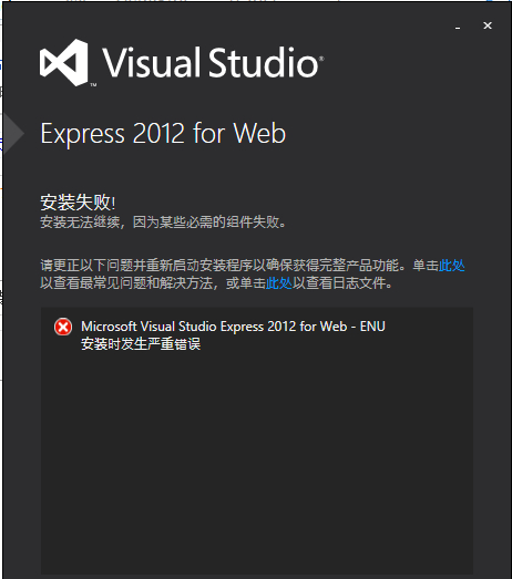 Microsoft Visual Studio Express 2012 for Web-ENU安装发生错误,求教,急