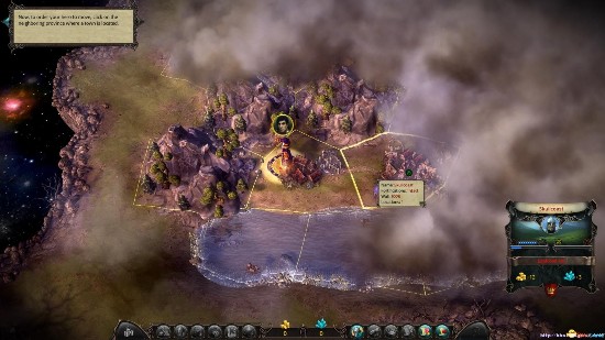 游戏开始之初仍然是我们简单的教学模式。玩家在战略模式下的操控,大部分都需要点击人物的头像,在其所显示的分类菜单面板下进行相应的命令选择