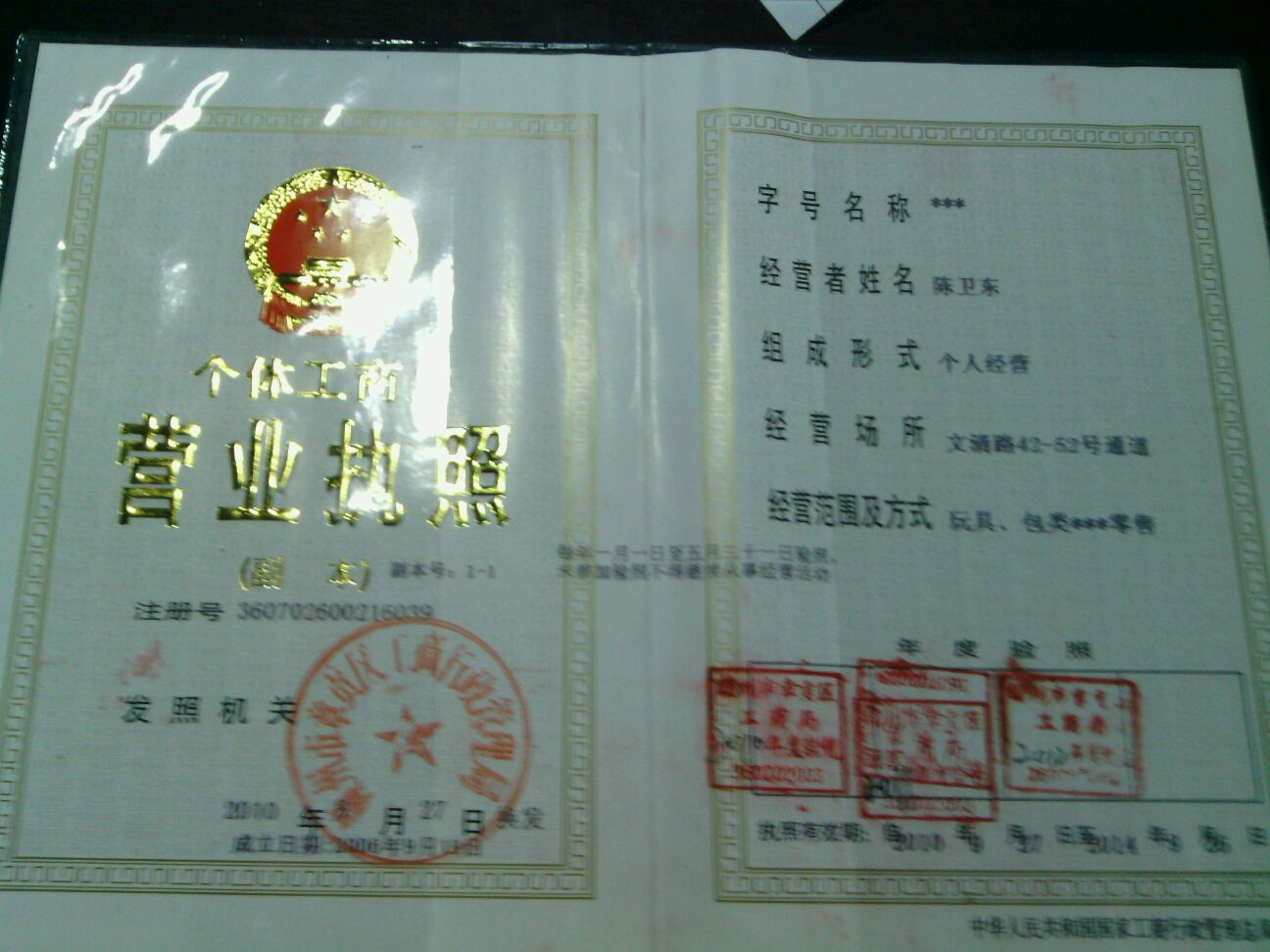 我家已经在文清路摆了十几年的摊子,有证件。