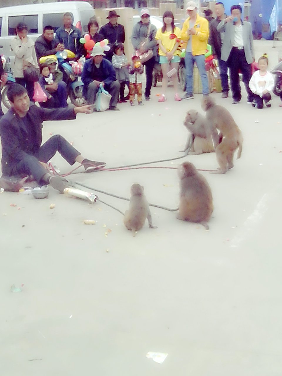 训练猴子表演然后让猴子问人要钱,还打猴子!