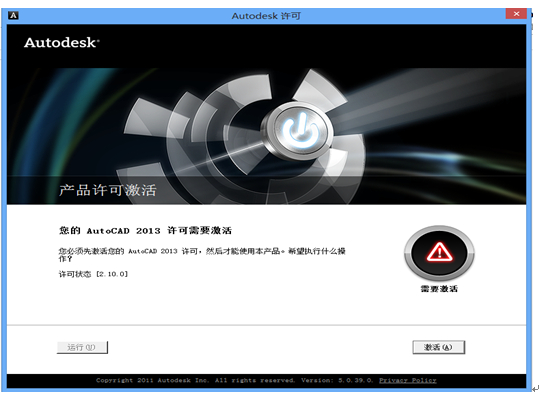 开始注册,打开AutoCAD2013,直接进入激活页面: