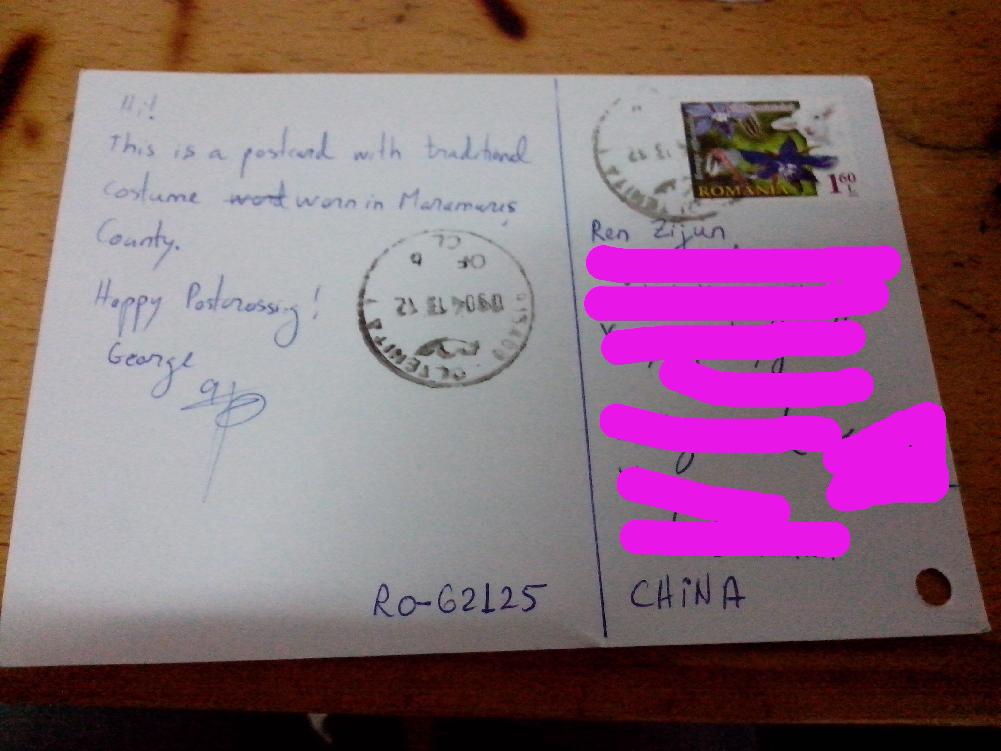 今天收发室的阿姨出奇的热情。还说这个明信片她刚刚收到,我就来了。真的很及时。她阿姨笑着说的。