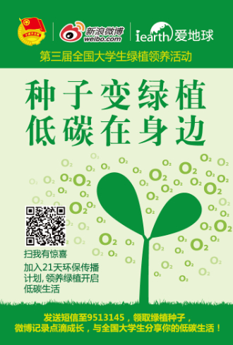 种子变绿植,低碳在身边!第三届新浪微博iearth爱地球全国大学生绿植领养活动开始了,编辑新浪微博参与微话题: