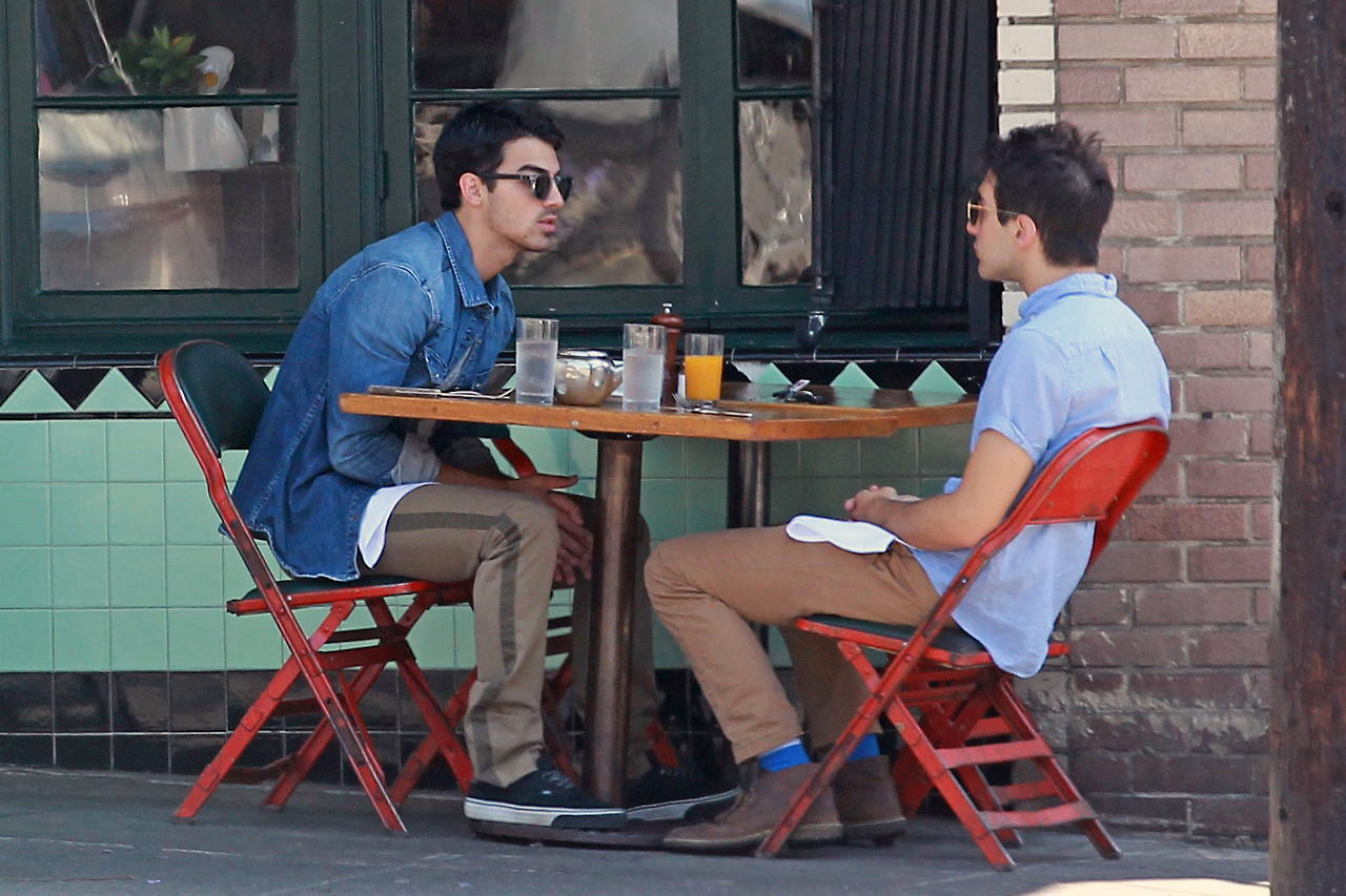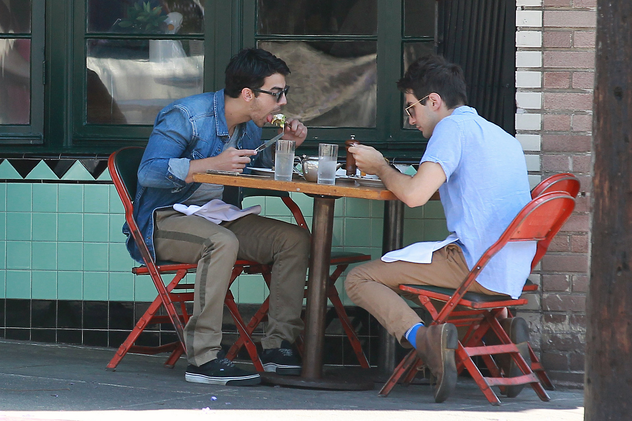 Joe Jonas takes advantage of the beautiful weather and sits outside of a restaurant to enjoy breakfast on Saturday morning (May 11) in Los Angeles.