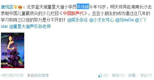 特长:舞蹈,唱歌,表演就读