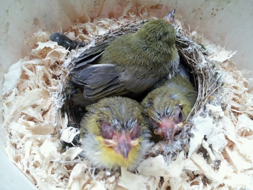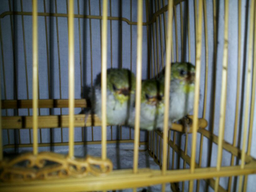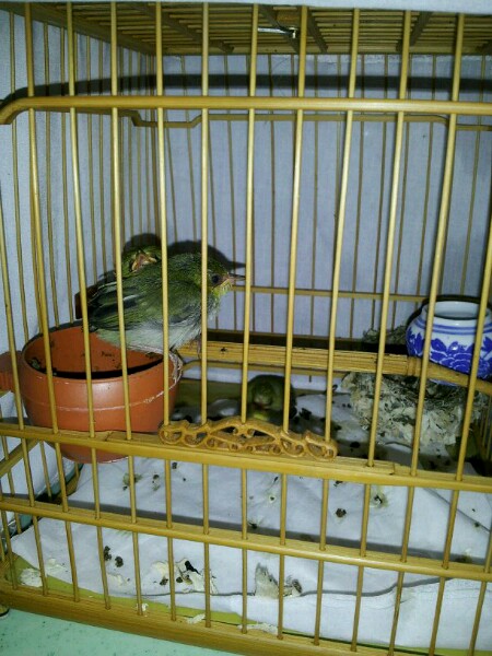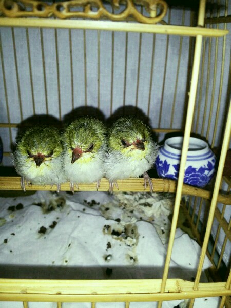 第三天,今天出窝了,我也关进笼子了,有点扑笼,还不怎么吃食了。没有前几天好喂食了!
