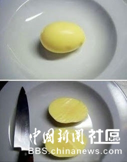 疯狂晃动你手中的鸡蛋,煮熟后你便得到了一个黄金鸡蛋(如图)!妙处:儿童更易食用,而且不会把蛋黄末搞得到处都是。
