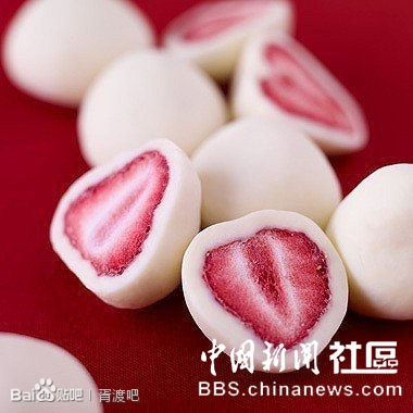 把草莓泡进酸奶里,然后冷冻,就变成了酸奶草莓~~~这个真心的美味啊、、、