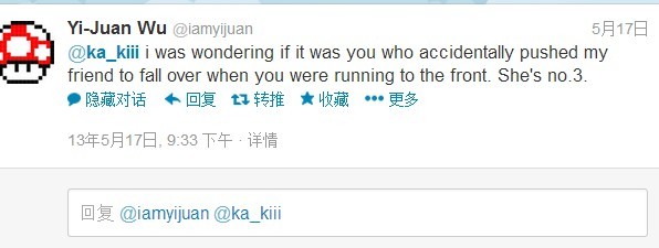 1.先看new vongin,这是个泰国人但是去印尼看了演出,还和gra合影,在汤上就见她晒过合影。然后她发了推特个gra,说supper happy,gra回复了一个X,就是kiss的意思