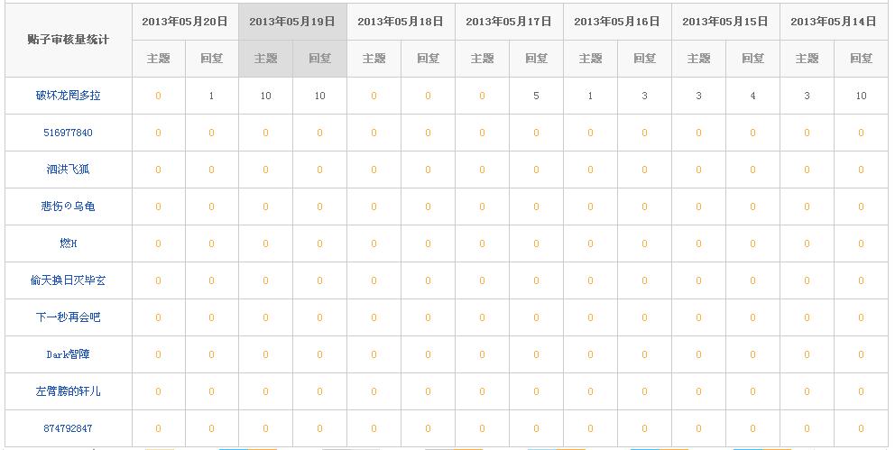公平起见,用数据和事实说话。根据吧务日志前二十页(差不多一个月),连一次都没有出现过的吧务为: