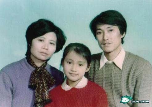 张歆艺小的时候和他她父母的清涩合影
