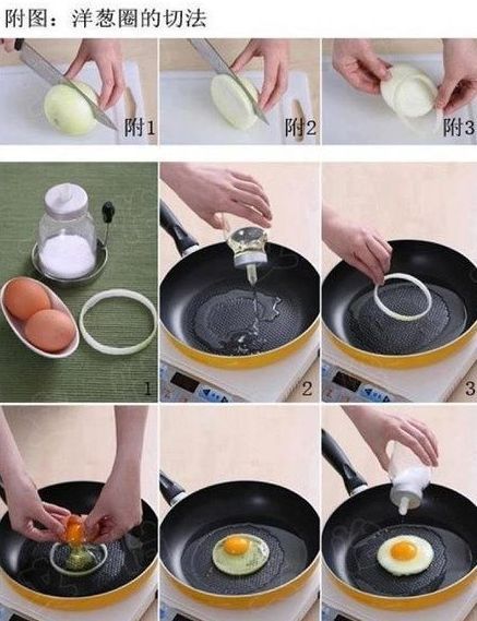用洋葱圈煎鸡蛋,煎出来的鸡蛋又圆又饱满