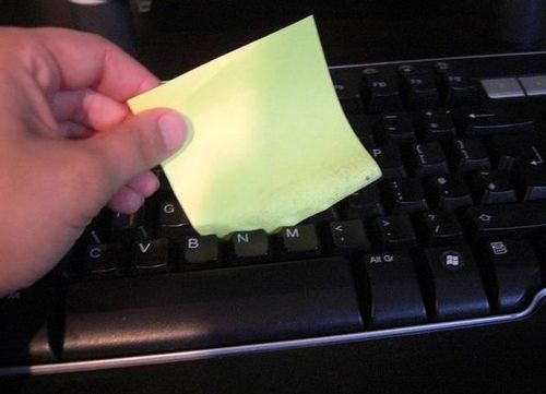 用便利贴有粘性的那一头可以轻松粘出键盘里的灰尘和头发噢