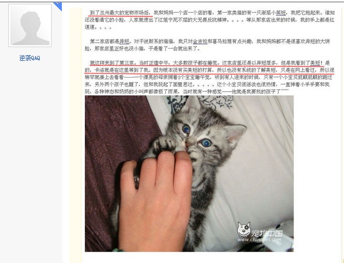 3.很多人对于我自己800买了个猫,然后要求别人从正规猫舍买猫很有看法。我说的极端一点,如果准家长们能很有自信能用800买个不次于卡洛的猫,哪怕没证书,我没意见。自从有了卡洛之后来找我问价的不少,我至始至终说的话都是卡洛没参考价值。关于卡洛的一切都显得太不符合实际了,被当时连猫有品种都不知道的我用那么个价带回来;长残也就罢了,出现串种痕迹也就罢了,可惜没有;最终还和CFA扯上了关系。。。。无论你们相信与否,这就是卡洛。照着卡洛的样子买美短的家长不少,难道因为自己什么都不懂的时候万幸撞上了这样一个不算坑爹的卡洛,就鼓励大家也去赌?买个相同价位的猫然后指望着也长成卡洛这样?我不敢打这样的保票。
