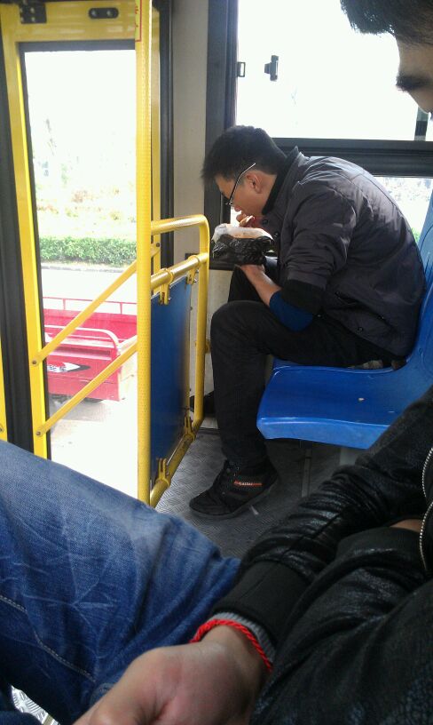 车子还在行驶之中,吃着凉面,旁若无人的境界。