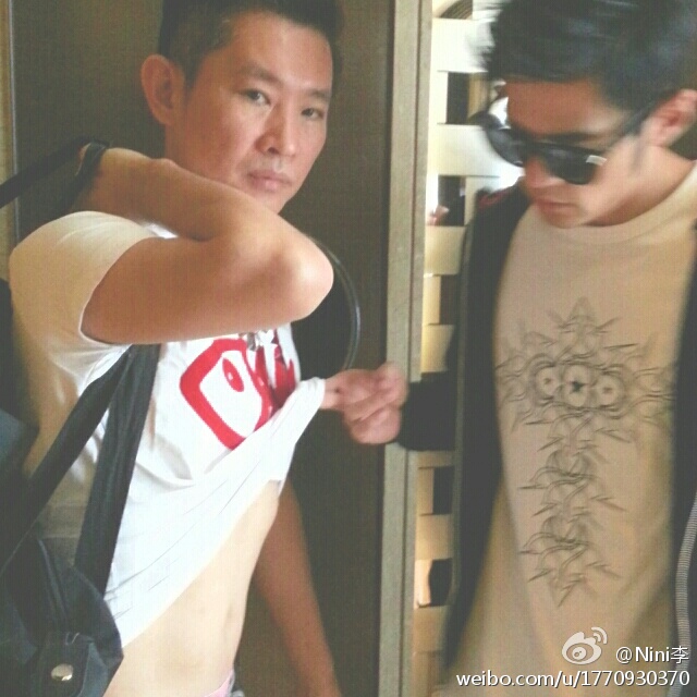 杜哥:次奥,劳资的粉色内裤边都被你露出来了!回去找田老板娘告你状!还好我老人家经常洗肚脐眼!!!