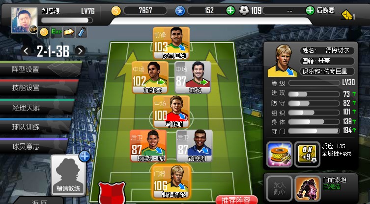换了后腰。甲级你的阵容应该很稳